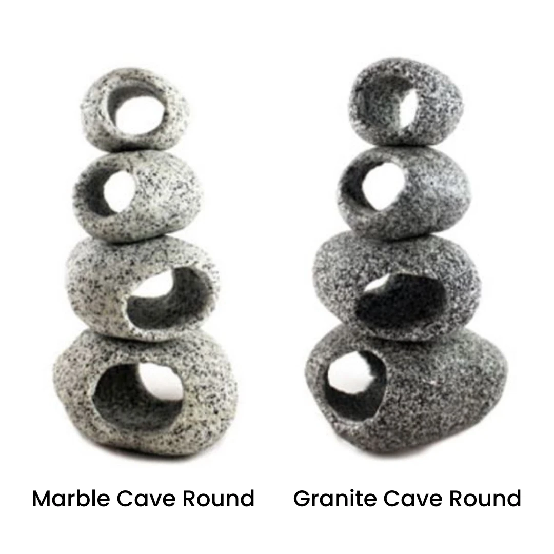 The Aqua One Marble Cave Round is made of durable granite and features an opening to allow your fish to swim through.