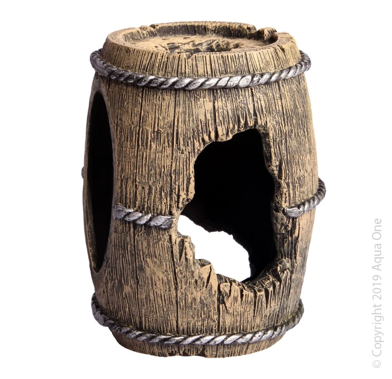 This realistic whisky barrel ornament is perfect for adding a touch of rustic charm to your aquarium.