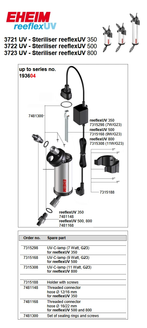 reeflexUV 500 = Maximum flow capacity: 800 l/h