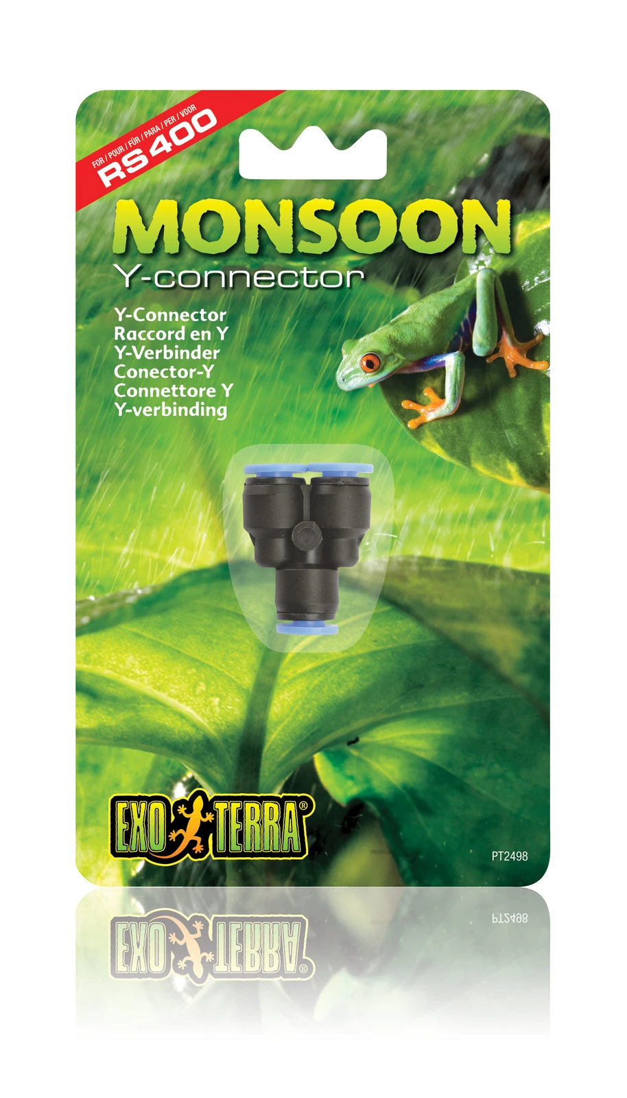 The Exo Terra Monsoon Y-connector is an extension part for the Exo Terra Monsoon misting system, allowing you to connect an extra nozzle to an existing system.