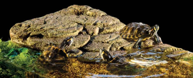 - A submerged ramp that allows your turtle to easily enter and exit the water