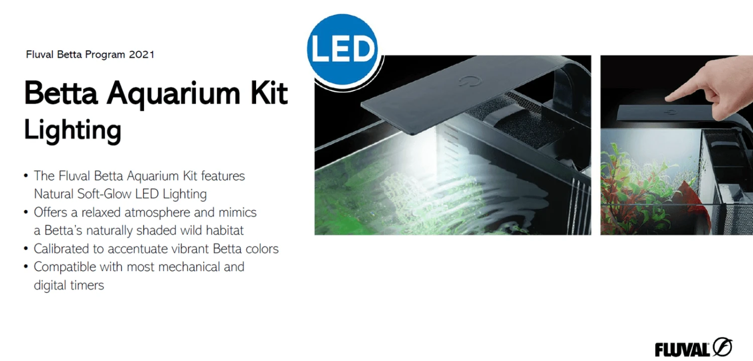 The Fluval Betta Aquarium Kit features Natural Soft-Glow LED Lighting.