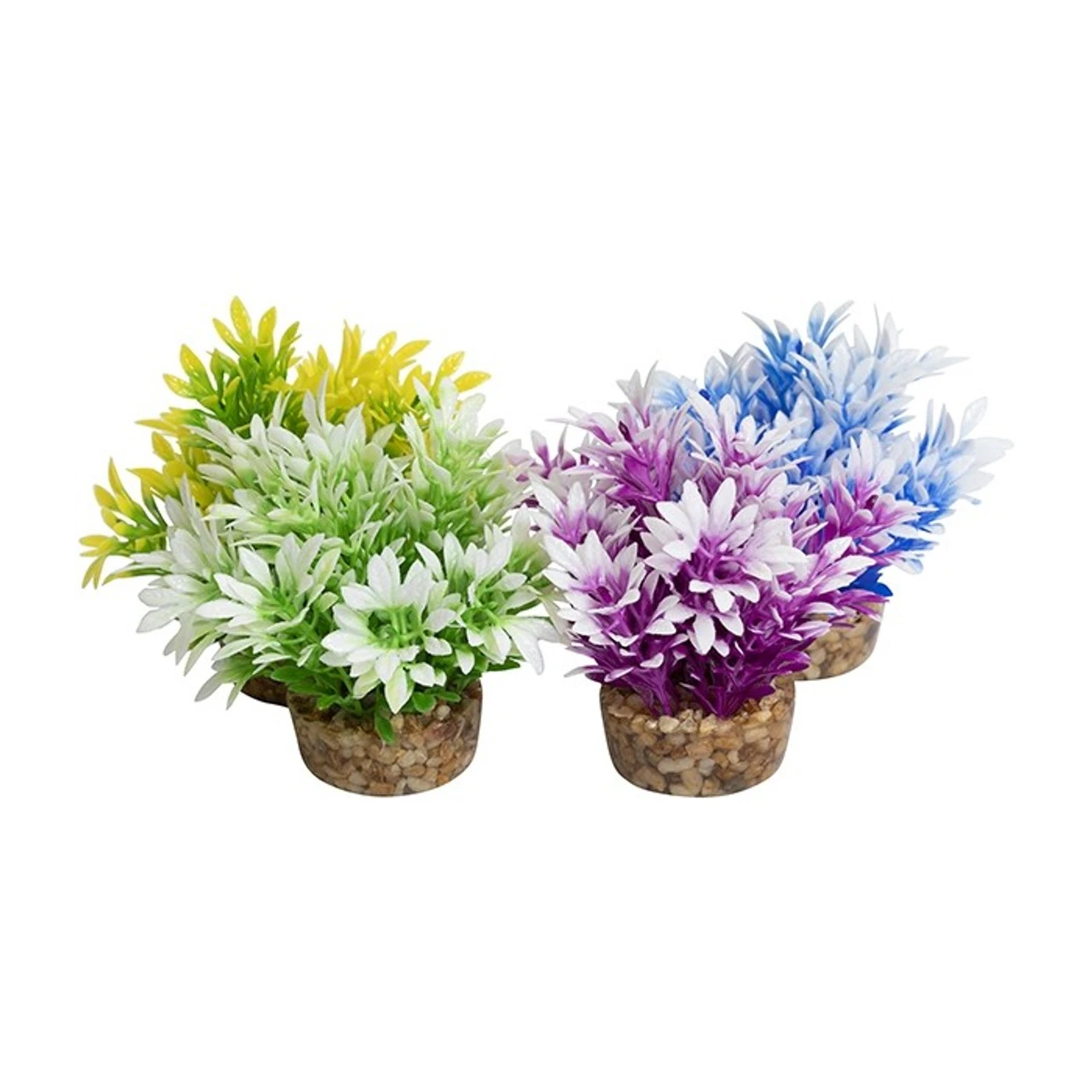 Kazoo Mini Coloured Tip Leaf Plastic Plants are available in yellow, green, purple and blue, picked for you at random to add a pop of colour to your tank! These small ornaments are perfect for the foreground to add dimesion to your aquascape.Â
