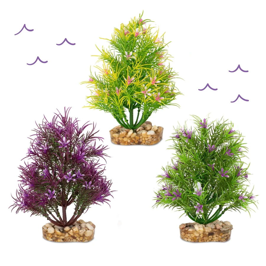 Kazoo Thin Leaf with Flowers Plastic Plants are available in yellow, green and purple,ย picked for you at random to add a pop of colour to your tank!ย These small ornaments are perfect for the foreground to add dimesion to your aquascape.ย