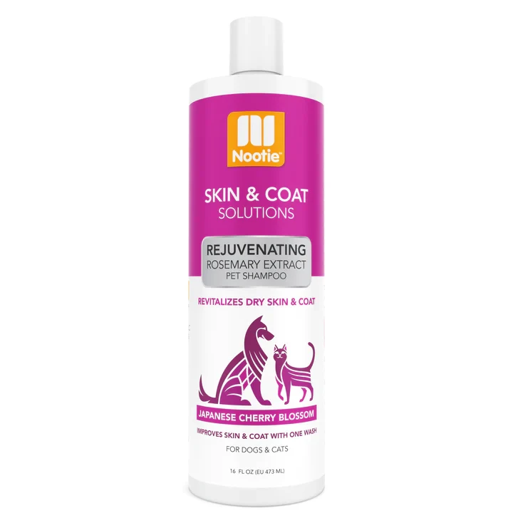 Nootie Rejuvenating Rosemary Extract Pet Shampoo helps stimulate the skin follicles to promote healthier skin and a strong coat.