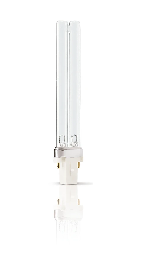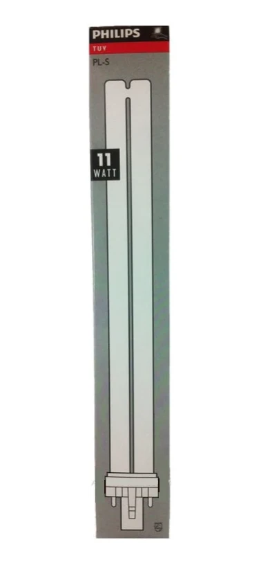 The Philips TUV PL-S 11W/2P is a compact UVC germicidal lamp used in residential water and air disinfection units. It emits ultraviolet (UV-C) light at a wavelength of 254 nanometers (nm), which is the most effective wavelength for killing bacteria and other microorganisms.
