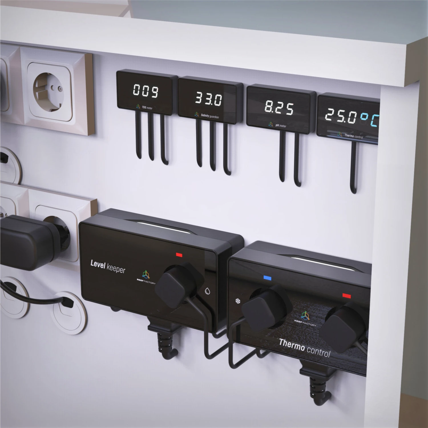 Data can be previewed online and the device can be configured via a browser on a laptop or an application on a smartphone. The temperature level is clearly displayed. The device controls the heating and cooling systems and maintains a specified temperature. Additionally, you may safeguard your aquarium by setting alerts triggered if the specified temperature values are reached. After connecting the device to the Smart Reef system, you will be able to receive text notifications directly to your phone when the temperature rises above or falls below the specified range.