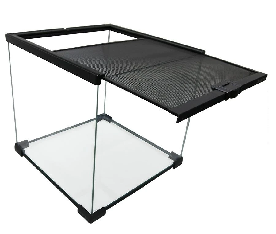 The Mini-T2 features raised feet to allow placement of a heat mat and enables the enclosures to be stacked. The super fine steel mesh lid provides added security and ventilation.